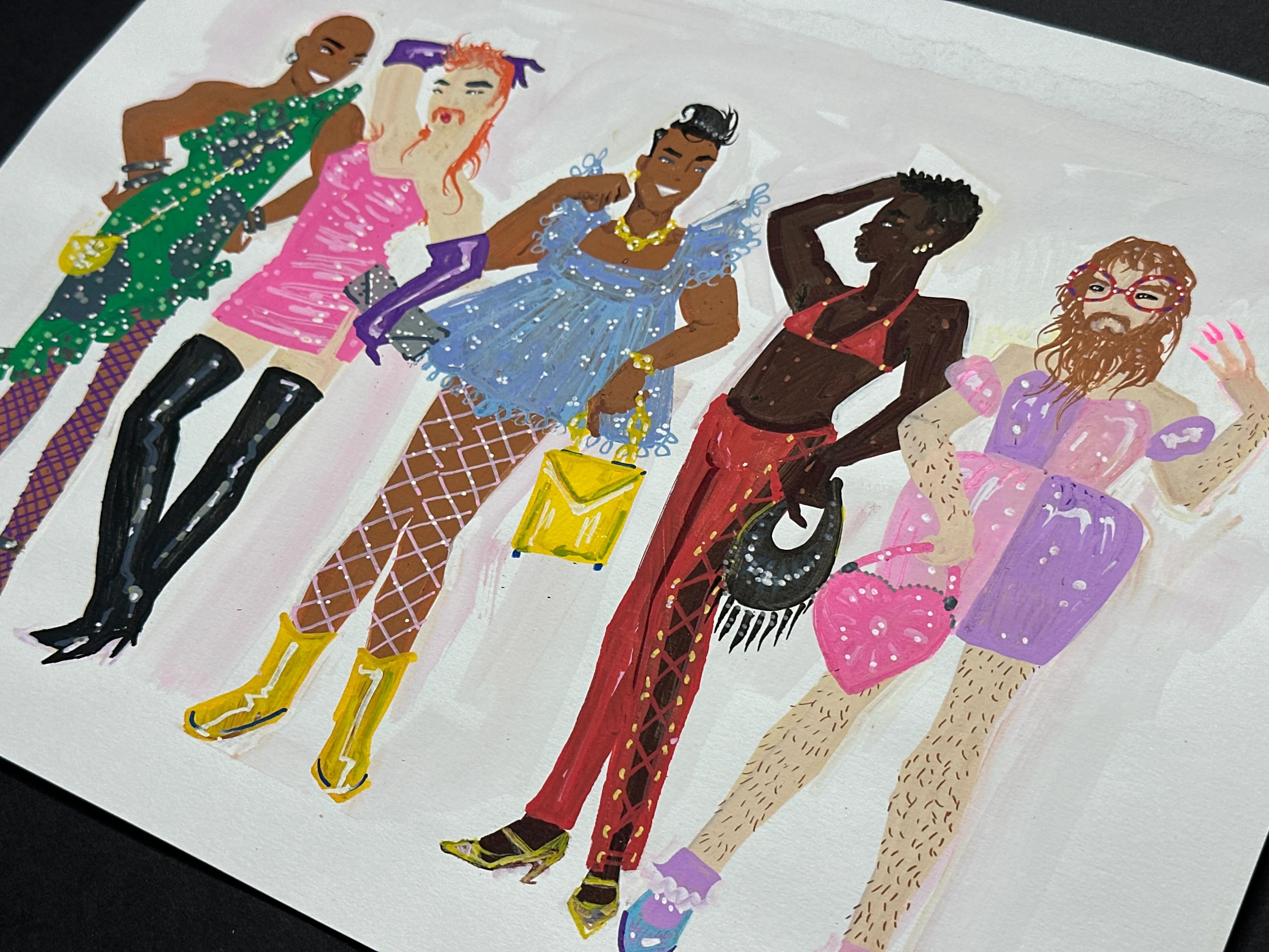 Original, one-of-a-kind fashion illustration by artist and Pidgin creator Joshua David McKenney. Medium: paint pen on paper. Size: 11 x 14 inches. Unframed.