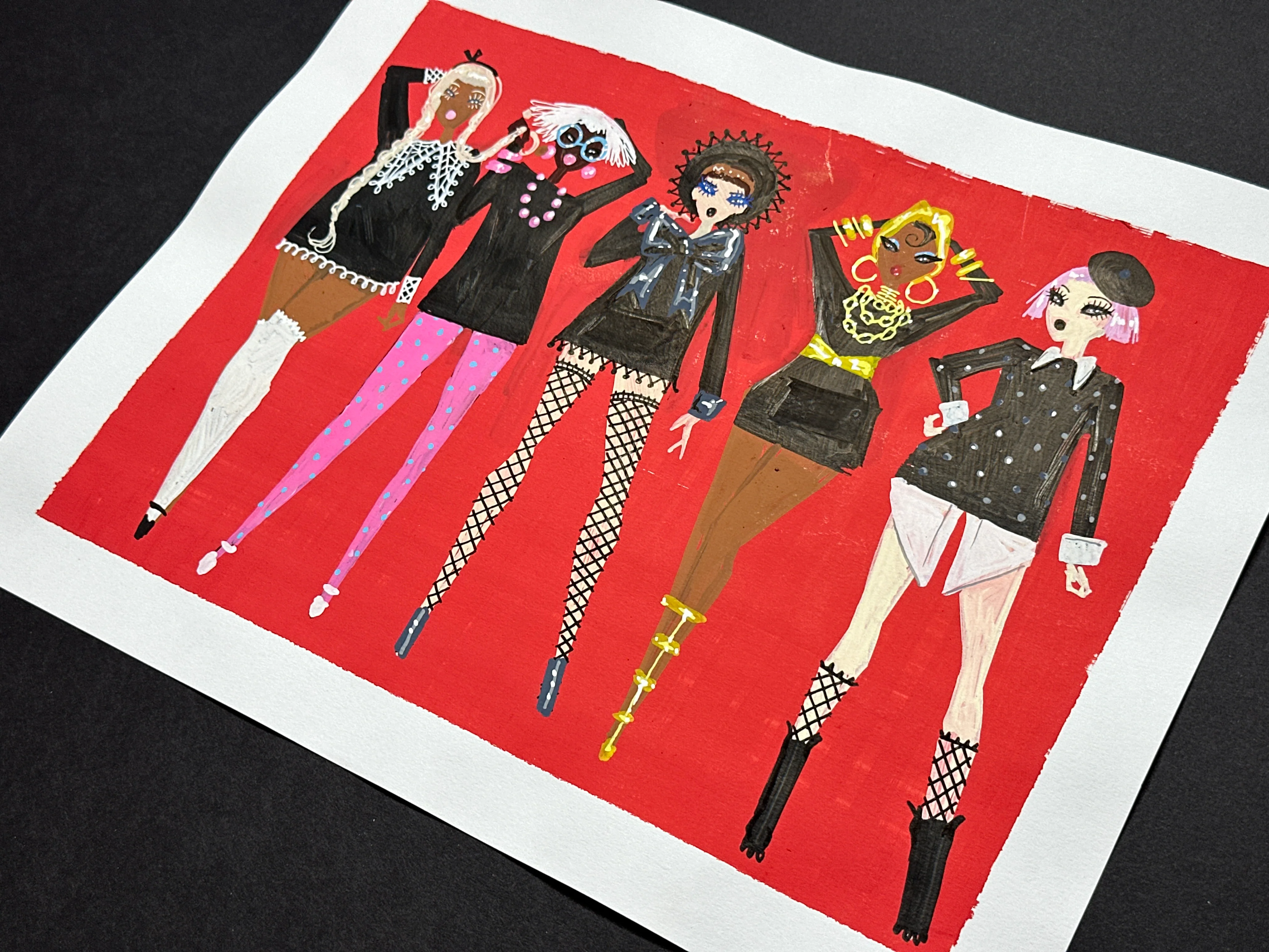 Original, one-of-a-kind fashion illustration by artist and Pidgin creator Joshua David McKenney. Medium: paint pen on paper. Size: 11 x 14 inches. Unframed.