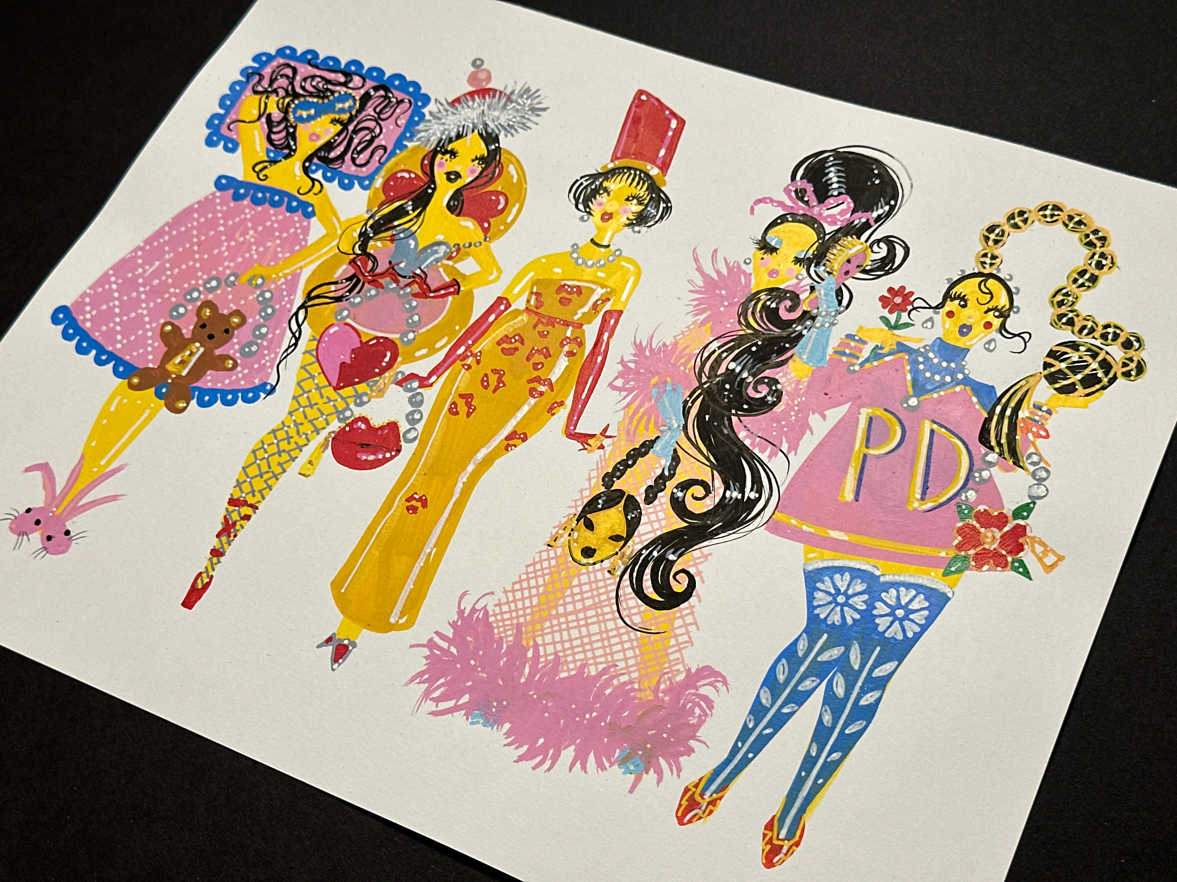 Original, one-of-a-kind fashion illustration by artist and Pidgin creator Joshua David McKenney. Medium: paint pen on paper. Size: 11 x 14 inches. Unframed.