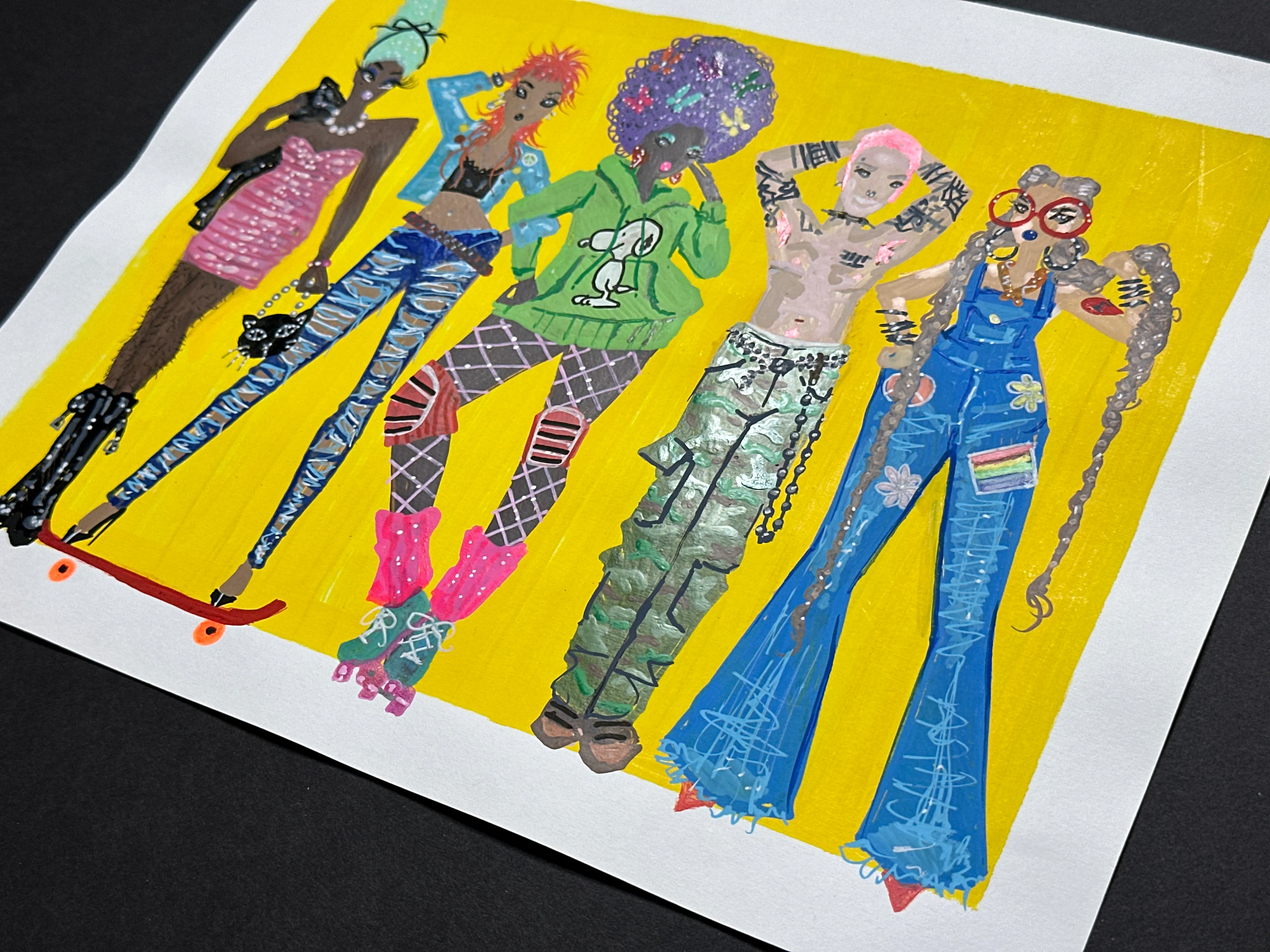 Original, one-of-a-kind fashion illustration by artist and Pidgin creator Joshua David McKenney. Medium: paint pen on paper. Size: 11 x 14 inches. Unframed.