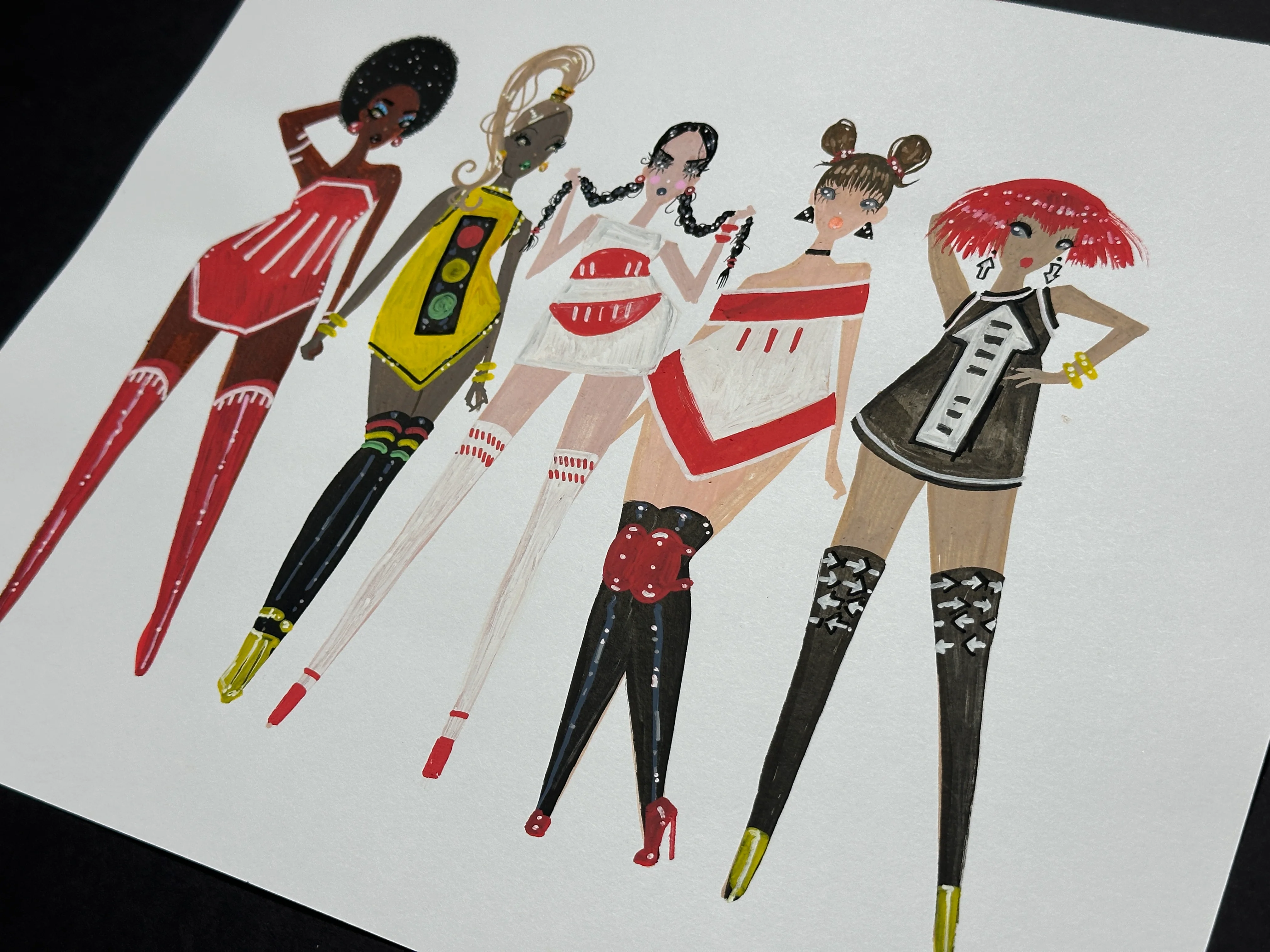 Original, one-of-a-kind fashion illustration by artist and Pidgin creator Joshua David McKenney. Medium: paint pen on paper. Size: 11 x 14 inches. Unframed.
